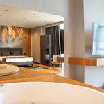 L'hotel offre des chambres avec un coin salon comprenant une climatisation, ainsi qu'une TV à écran plat avec des chaînes satellite. Pour agrémenter votre séjour, une toilette séparée et une douche, un sèche-cheveux et un bonnet de douche invitent à une bonne nuit de repos.